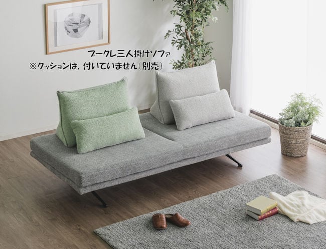 送料無料ブークレ3人掛けアームレスソファ幅202cm ソファーベッド ファブリック 3Pソファ 3人掛けソファー(352)