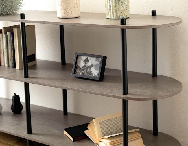 ◆棚板は両端が曲線を描いており、マットな質感の支柱との