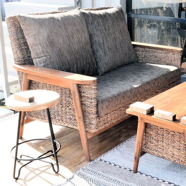 送料無料アバカ2人掛けソファー幅131cm ラブソファ 椅子 アジアン リゾート ラウンジ ブラウン系 アームレスト(914)