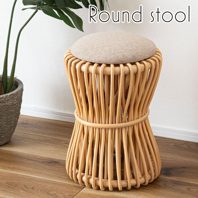 ◆天然ラタンの風合いでお部屋を彩るラウンドスツール