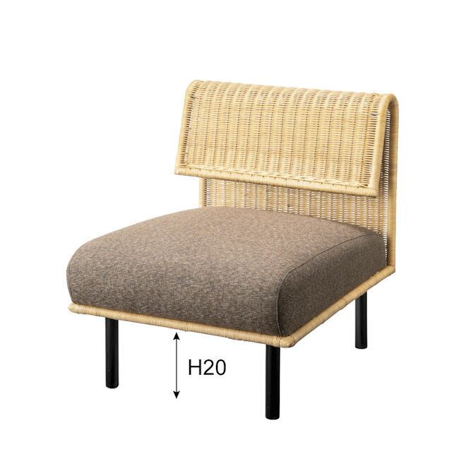 アームレス ラタンソファ1人掛け 幅60cm ソファ 籐 椅子 韓国インテリア(1366)