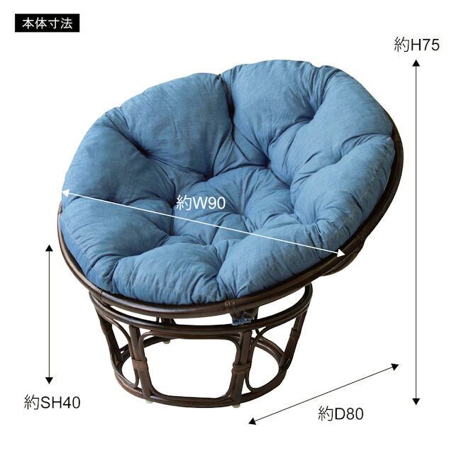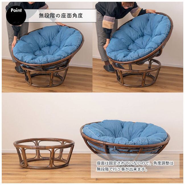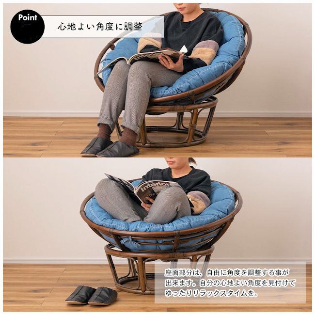 ラタン パパサンチェア幅90cm 座面デニム 角度調節 パーソナルチェア 座椅子 籐 完成品(1022)