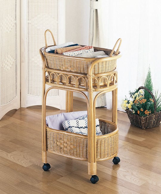 籐ラタン ランドリーワゴン キャスター付 幅63cm バスケット ランドリーラック ランドリーボックス 脱衣かご(842)